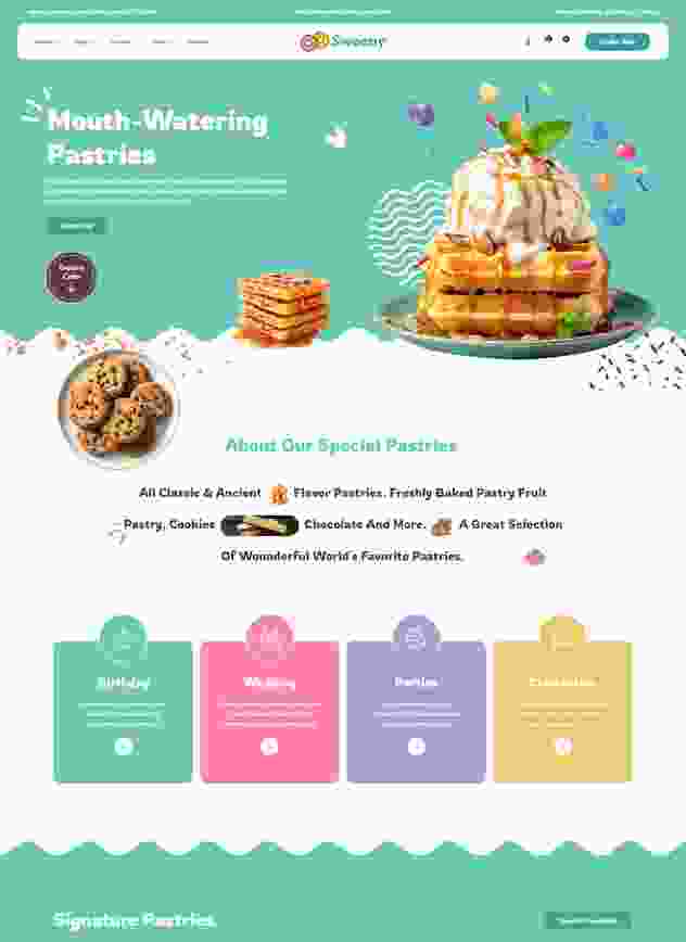 Sweeny - A modern WordPress Theme for bakery, cake shop, café, chocolate room, restaurant, coffee shop, cupcake, ice cream, pizza, cookies, doughnuts, honey, bread, candy stores, organic food, pastry, cupcakes, cakes, sweets, dessert shops & doughnut